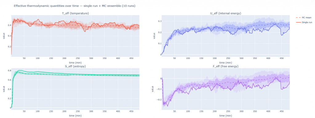 Termodynamika dodaje do tego jeszcze jedną, szerszą perspektywę. Pozwala patrzeć na sieć agentów jak na układ otwarty, który stale wymienia z otoczeniem informację, energię i koszt organizacyjny. Dzięki temu widzimy nie tylko, czy system działa, ale również w jakim stanie działa, gdzie kumuluje chaos, gdzie odzyskuje porządek i ile go kosztuje utrzymanie pozornej równowagi.