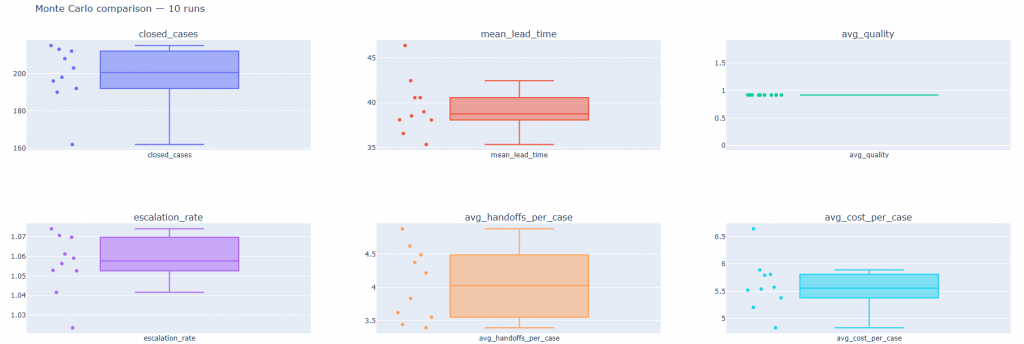 Symulacja pozwala przesunąć analizę na wcześniejszy etap, nim system trafi do produkcji. Dzięki niej można badać topologię relacji, porównywać polityki routingu, obserwować emergencję wzorców pracy, odróżniać incydenty od stabilnych tendencji oraz oceniać, jaką rolę naprawdę odgrywa człowiek w pętli decyzyjnej. Monte Carlo pokazuje przy tym nie jedną historię systemu, lecz jego charakter.